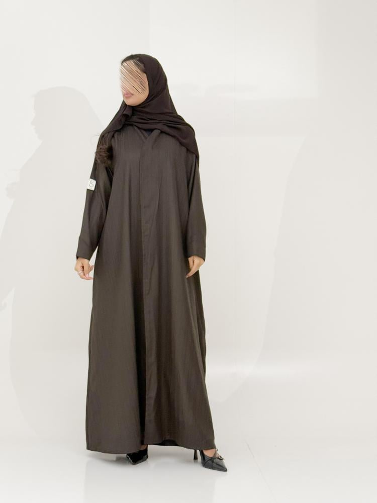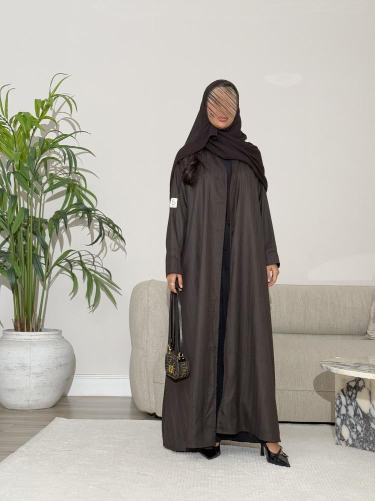 خامة العباية: كريب ناعم ، لون العباية بني ،