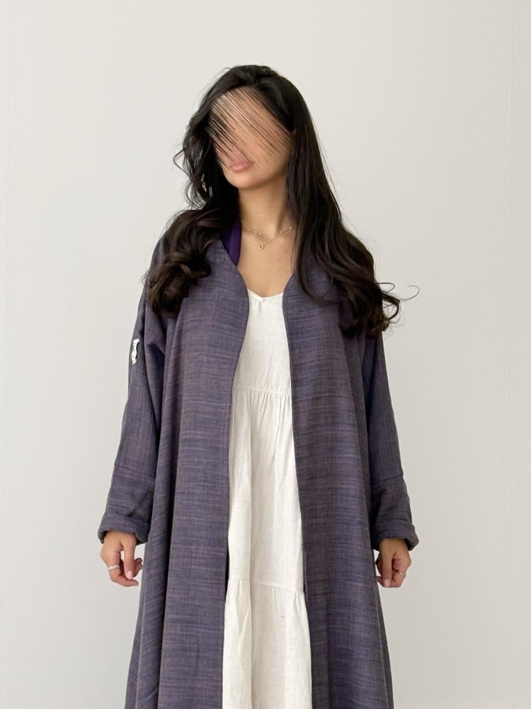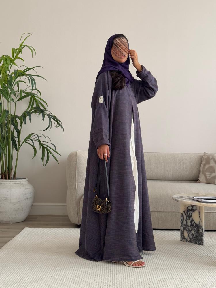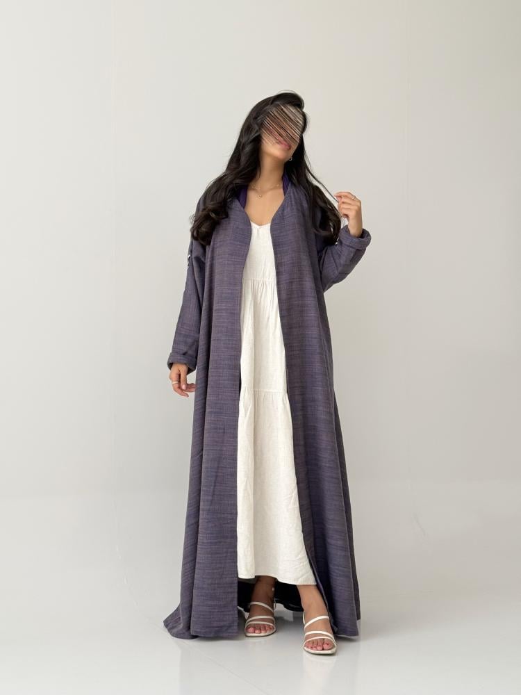 خامة العباية: لينن خيطين ، لون العباية بنفسجي ،